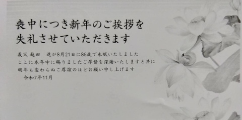 年賀欠礼のお葉書を